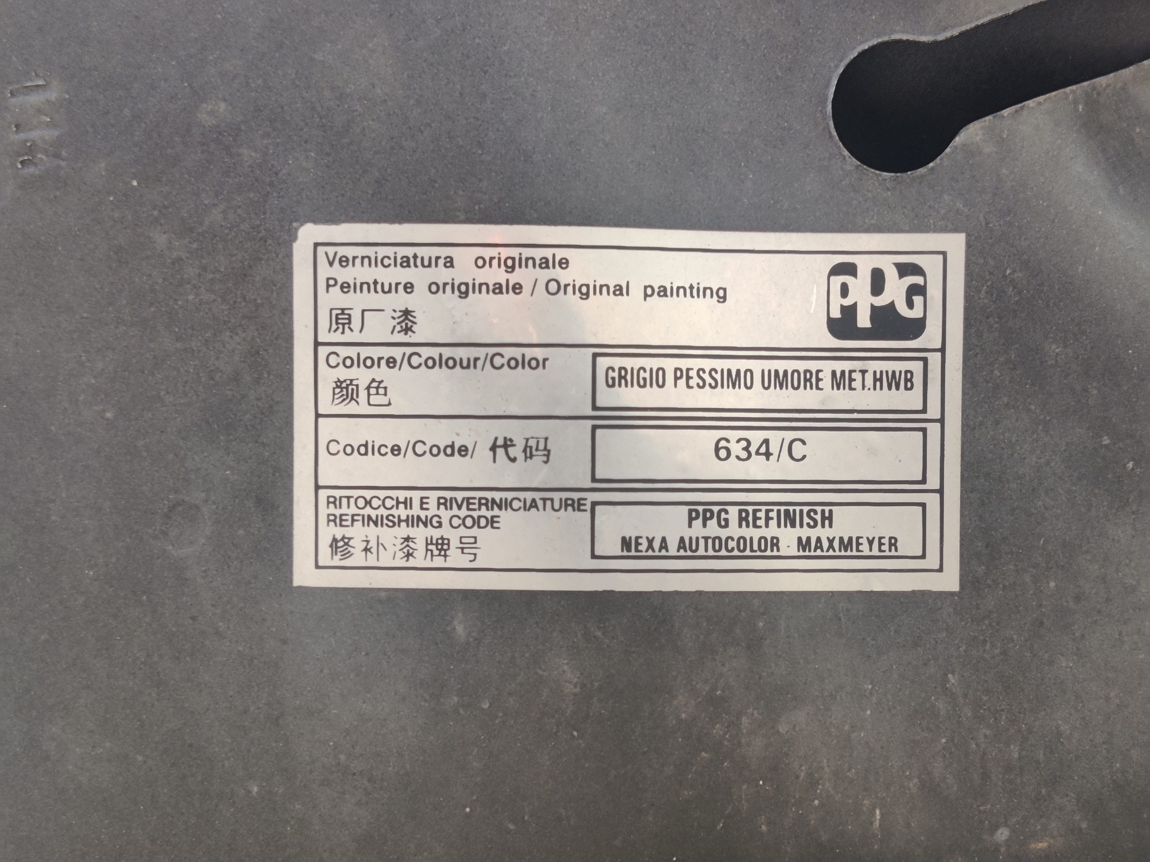 - Colore: 634/C (GRIGIO PESSIMO UMORE MET)