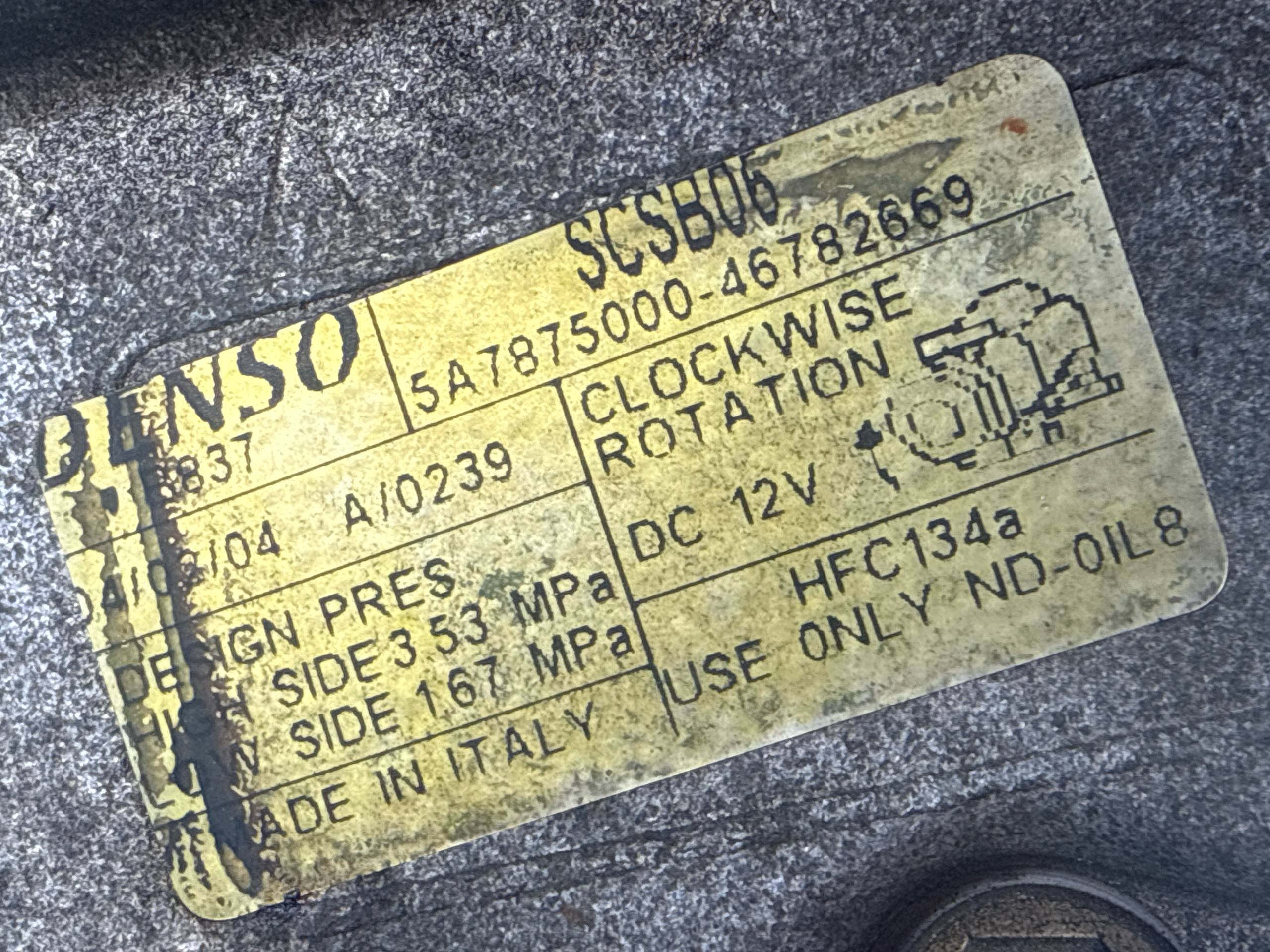 Compressore Clima, Fiat Punto 188 1.2 NATURAL POWER 60CV 2003-2012