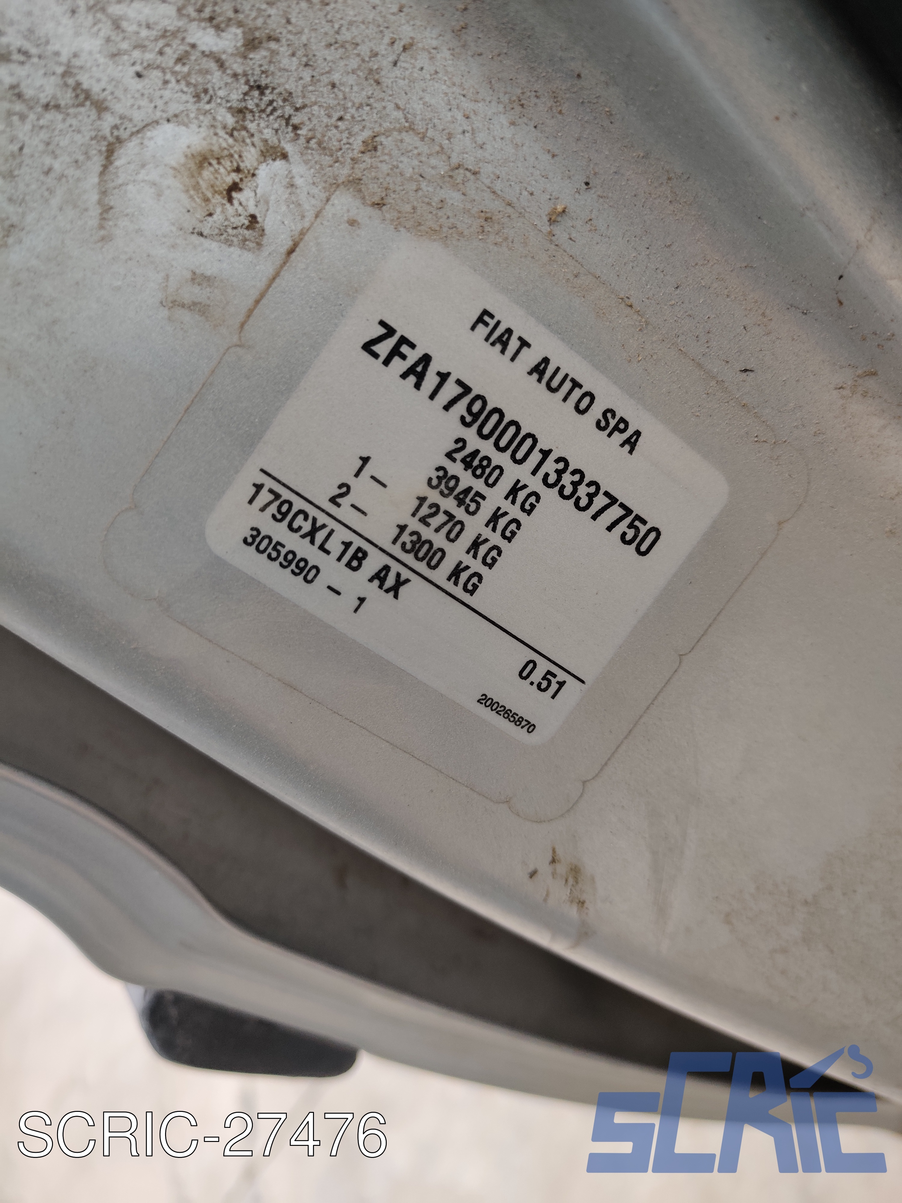 SCRIC-27476, Fiat Punto 188 1.2 60 60CV 1999-2010, FIAT 647 GRIGIO STEEL MET